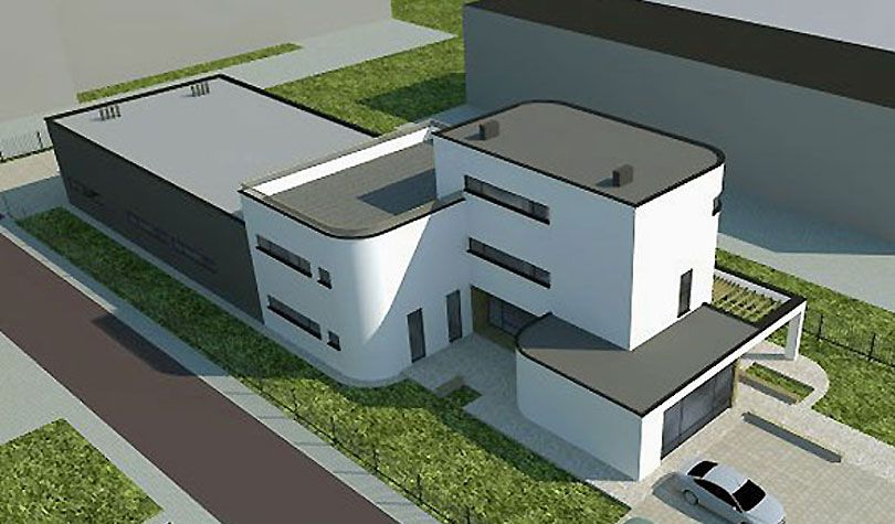 Projekt siedziby Amber Bridge – budynek biurowy wraz z częścią szkoleniową i magazynową.