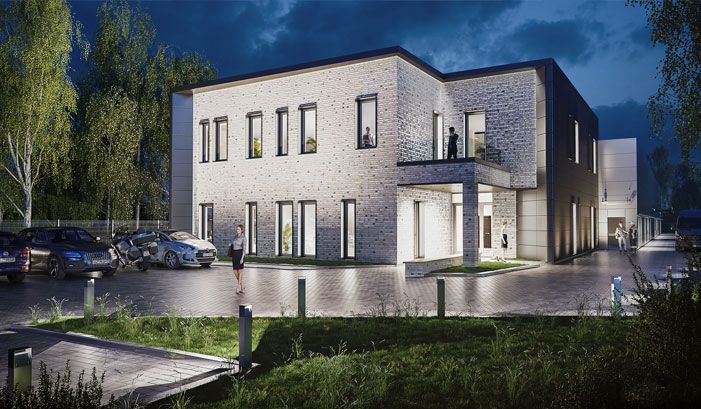 Budynek biurowy z salą szkoleniową oraz hala produkcyjna ze specjalistyczną technologią produkcji wierteł dentystycznych.