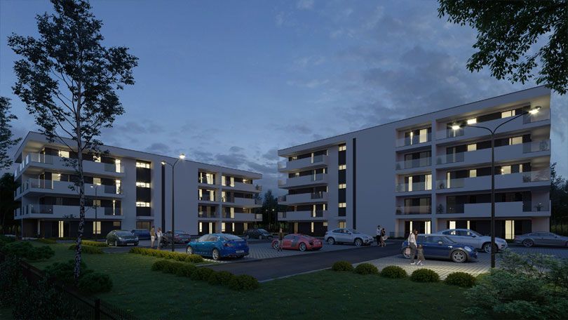 Kameralna zabudowa dwóch budynków wielorodzinnych na przedmieściach Żyrardowa