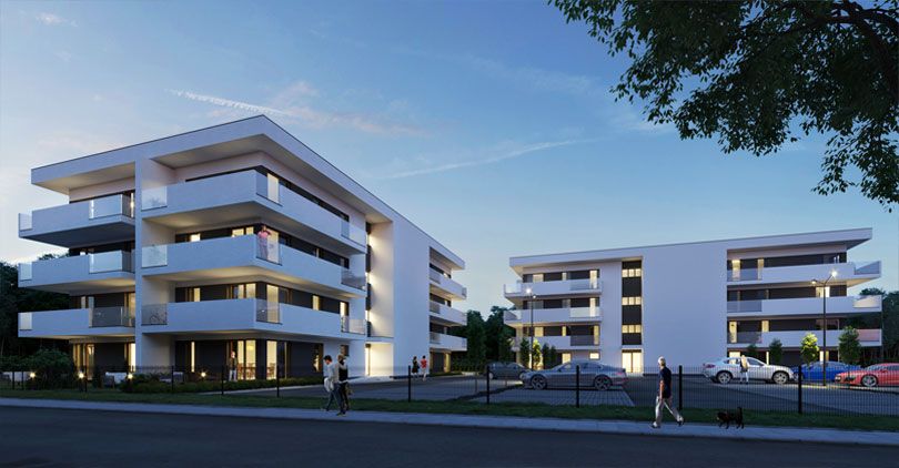 Kameralna zabudowa dwóch budynków wielorodzinnych na przedmieściach Żyrardowa